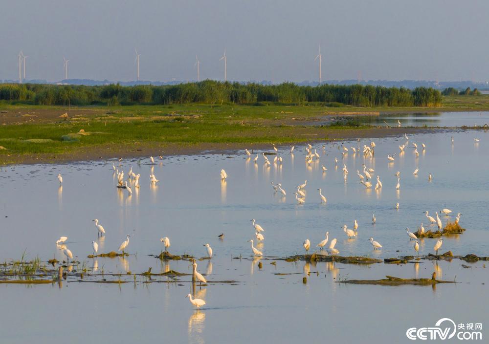 2025年7月23日,江苏省宿迁市,泗洪县洪泽湖湿地溧河洼临淮段,呈现出一片生机盎然的景象,成群白鹭在此翩翩飞舞。近日,随着洪泽湖湿地水位下降,这里的生态环境发生变化,吸引了鸟类日益增多。白鹭或翱翔天际,或在水中觅食,与湿地景观相映成趣。近年来,泗洪县不断加强对洪泽湖湿地的生态保护,使得湿地生态系统得到有效修复,为鸟类提供了更加适宜的栖息环境。视觉中国