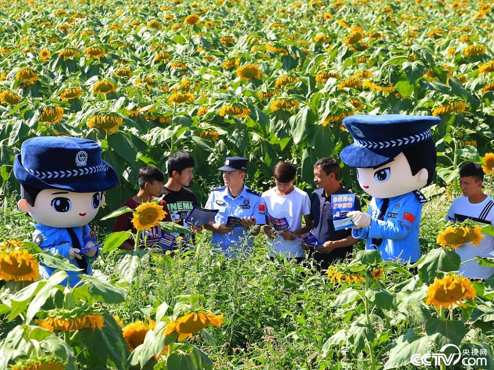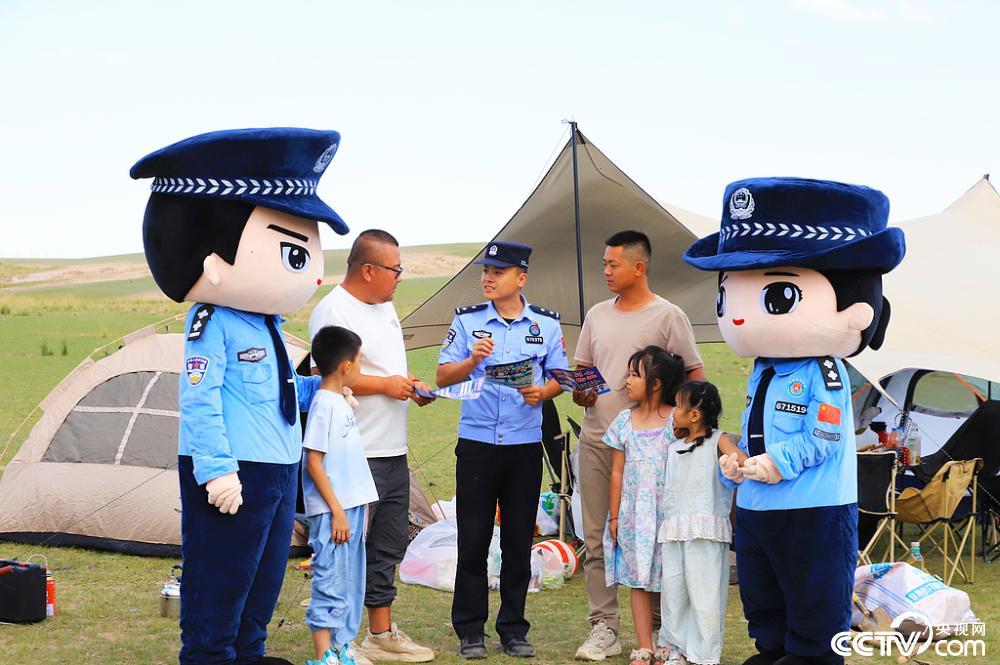 2025年8月17日,在新疆阿克苏地区温宿县的新疆天山托木尔景区·博孜墩内民警向来往游客发放资料,面对面讲解电信诈骗预防常识。视觉中国