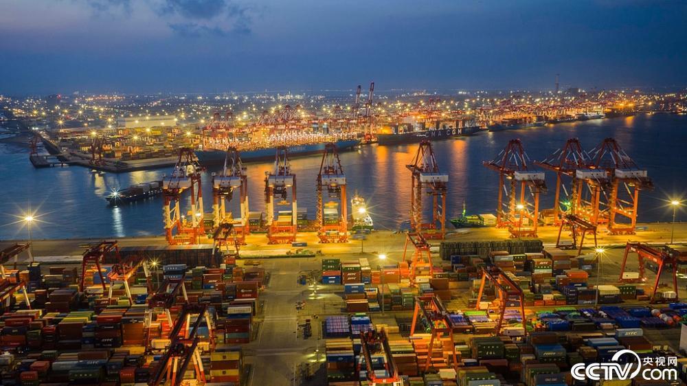 山东青岛:前湾集装箱码头灯火璀璨