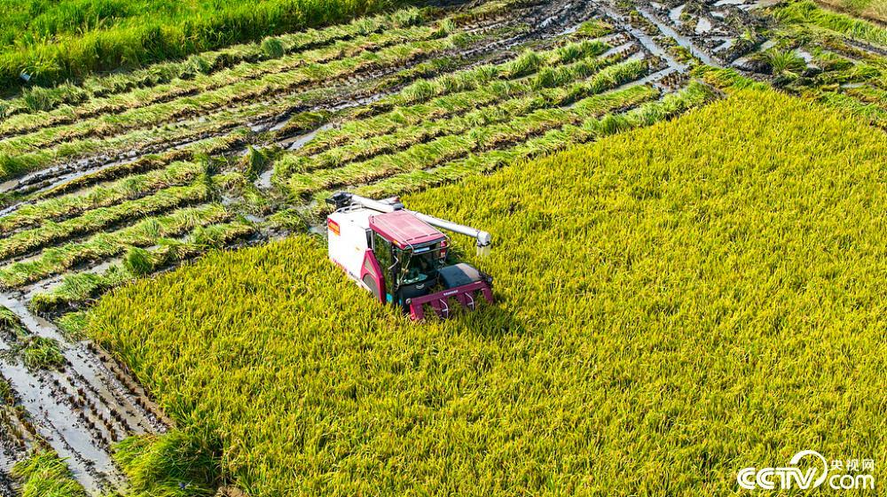 2025年8月19日,四川省眉山市东坡区太和镇水稻迎来丰收。金黄的稻田里,多台联合收割机轰鸣作业,高效推进收割进程,田间地头洋溢着丰收的喜悦。视觉中国