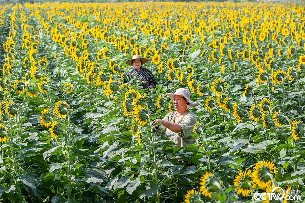 2025年8月18日,在河南省焦作市博爱县鸿昌街道马营村,市民们在赏花、拍照打卡。连日来,马营村的80亩向日葵基地繁花盛放,引市民游客纷至沓来。视觉中国