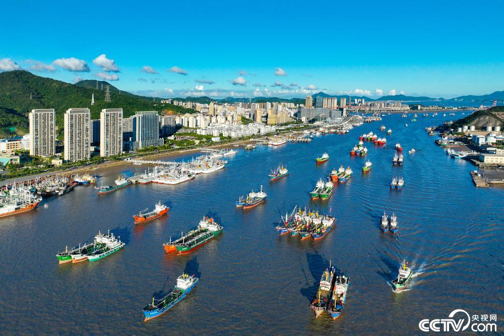浙江舟山:秋日渔港船只往来穿行