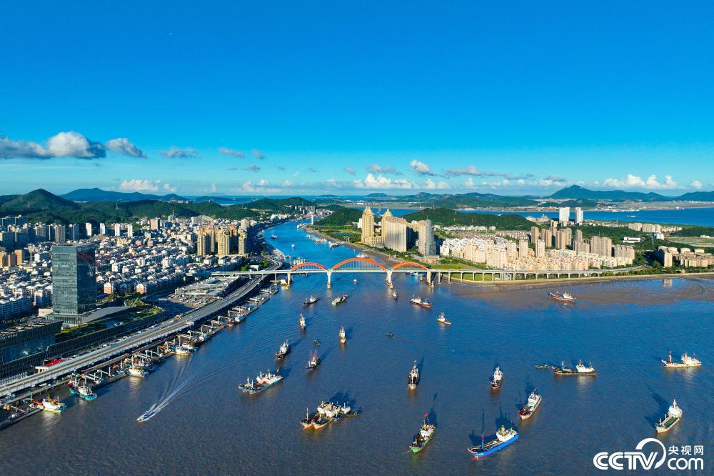 浙江舟山:秋日渔港船只往来穿行