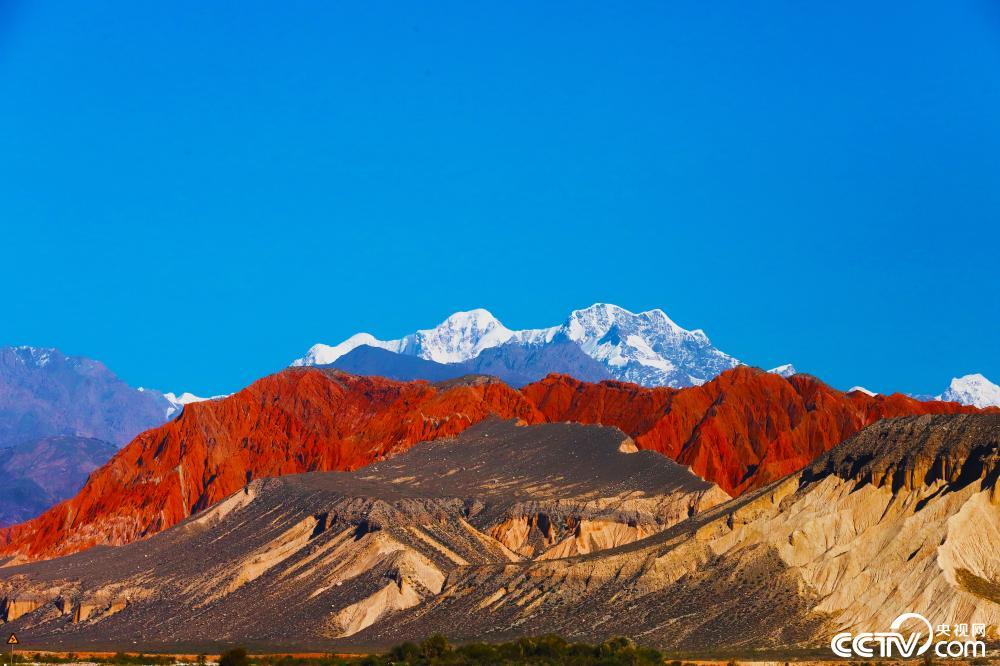 新疆温宿:天山托木尔景区斑斓山体映雪山