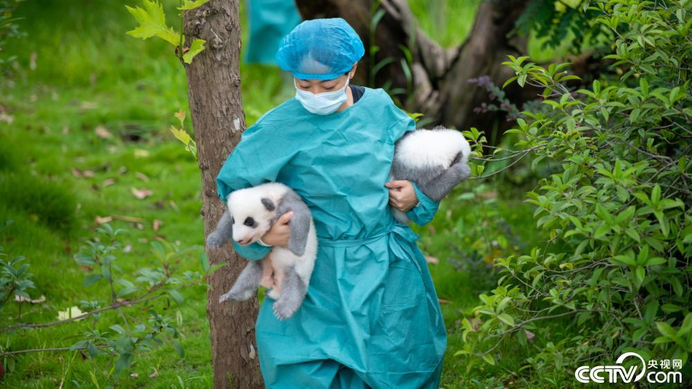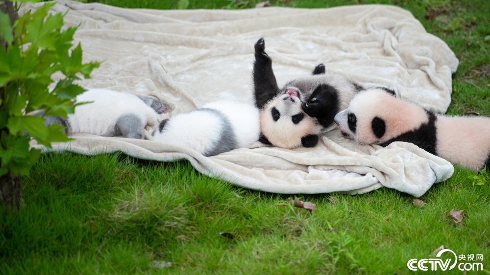 9月6日,成都大熊猫繁育研究基地,今年出生的熊猫幼崽在饲养员精心照料下公开亮相。视觉中国
