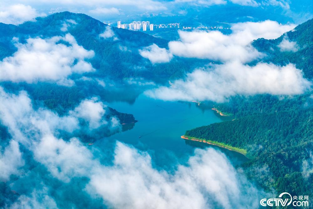 9月7日,广西梧州,蒙山县茶山水库云雾缭绕,生态景观如画。视觉中国