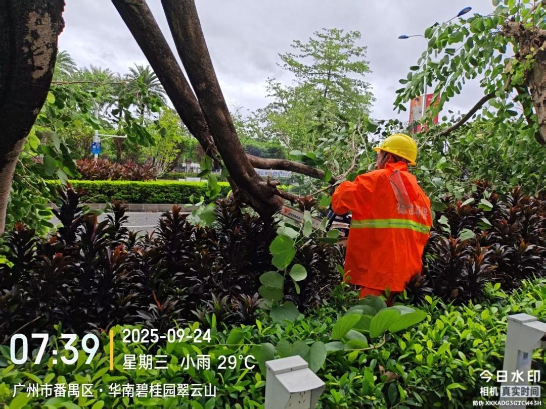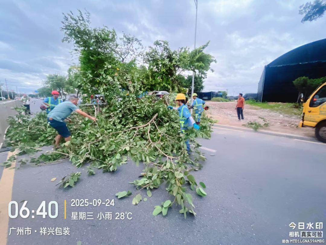 ▲9月24日上午,金龙路南珑工业园路口往北50米处一树木倒伏,石碁镇及时到场处理,清运倒伏树木。