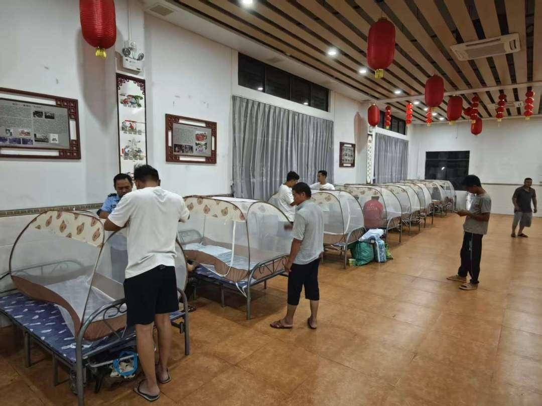 ▲石碁镇凌边村应急庇护场所贴心地为庇护人员准备了床铺和蚊帐。