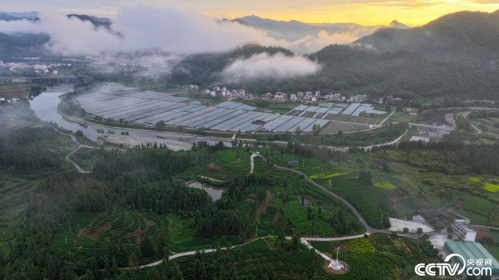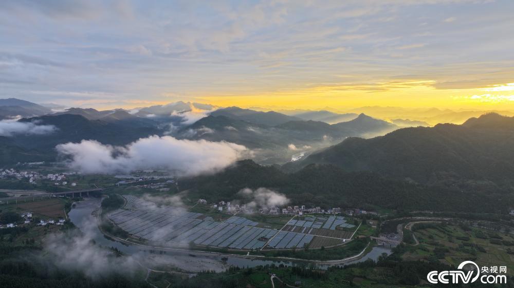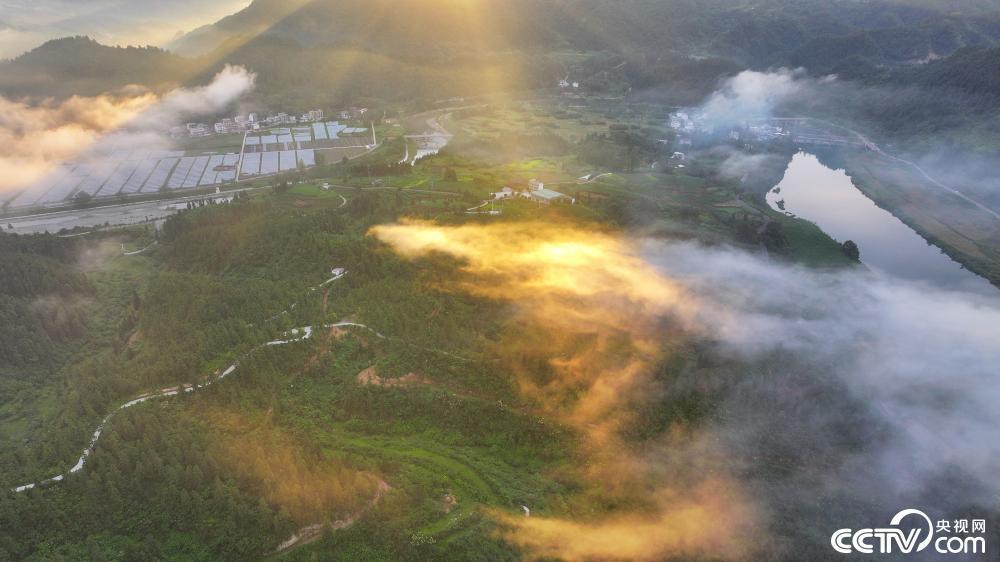 9月24日,贵州省铜仁市江口县坝盘镇挂扣村,阳光从天际倾泻而下,霎时山峦田野笼罩着一层玫瑰色的霞光,乡村被渲染成一幅浓墨重彩的油画,美不胜收。视觉中国