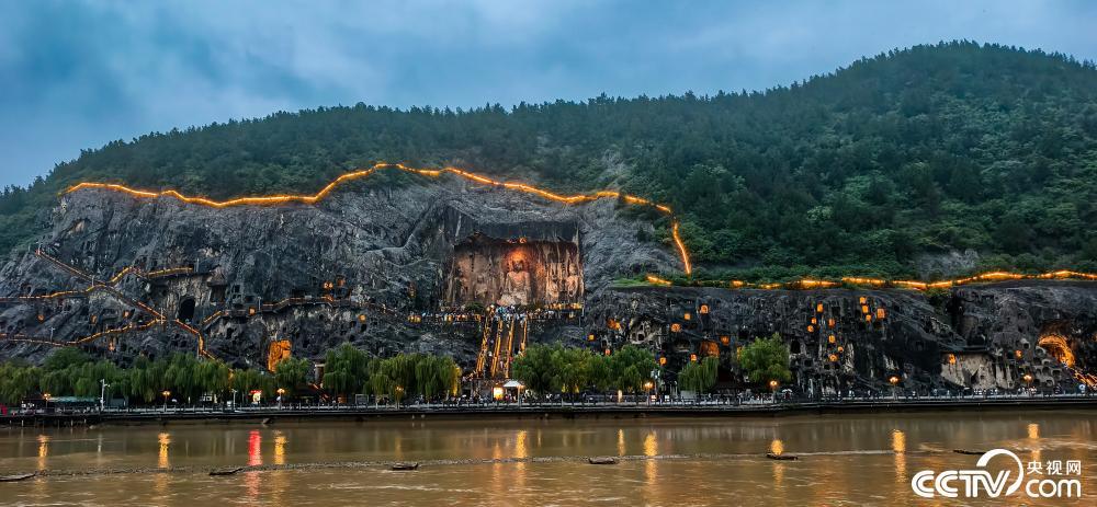 9月27日,河南洛阳龙门石窟景区灯光璀璨,夜景迷人,吸引众多游客感受千年石刻造像艺术的独特魅力。视觉中国