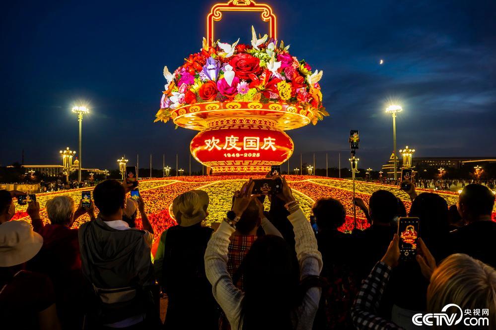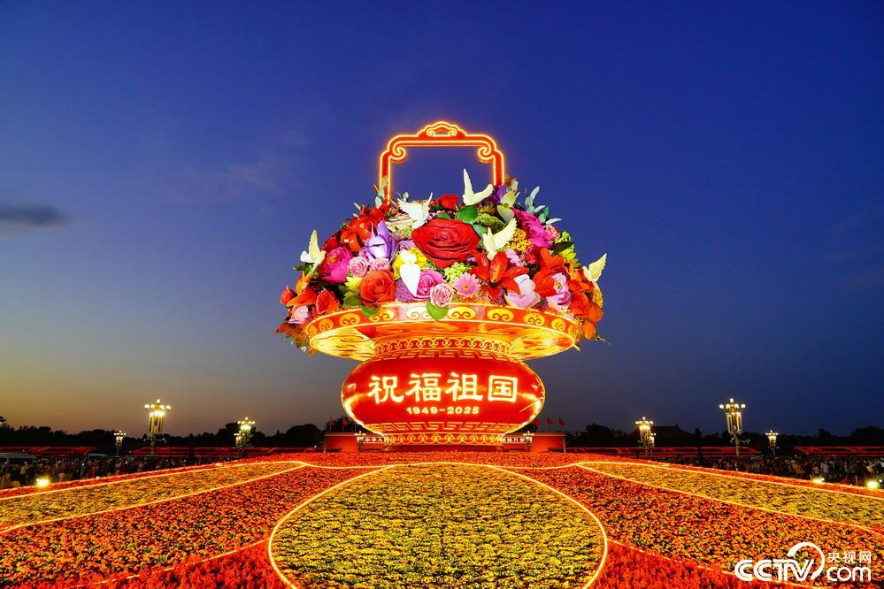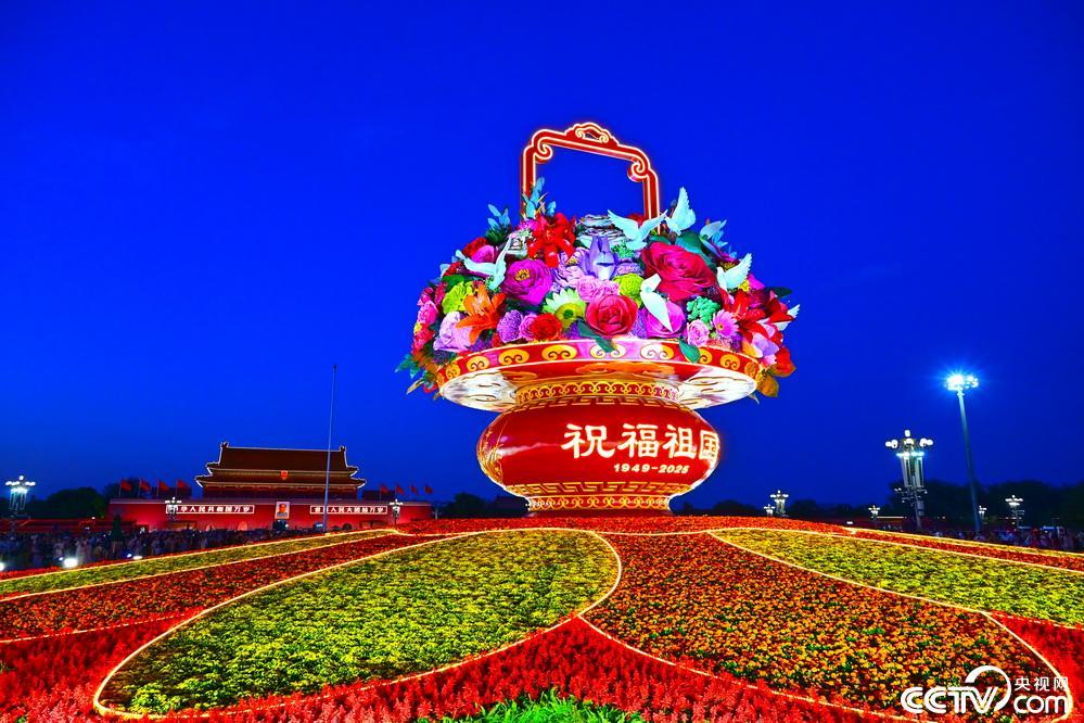 9月28日,北京天安门广场“祝福祖国”大花篮灯光璀璨喜迎国庆。视觉中国