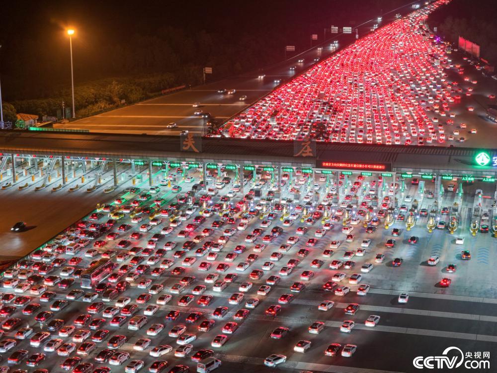 安徽滁州:全国最大高速收费站迎返程高峰 车辆排成长龙