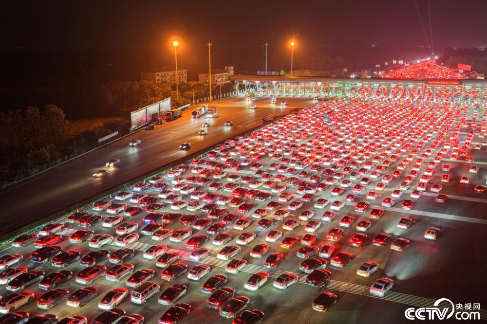 安徽滁州:全国最大高速收费站迎返程高峰 车辆排成长龙