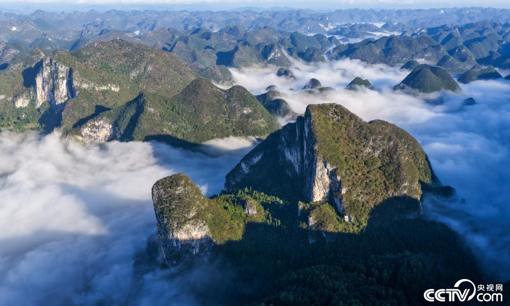 2025年10月17日,贵州省安顺市紫云县亚鲁王城景区云雾缭绕,群山峰峦若隐若现,呈现出独特的喀斯特山水。视觉中国