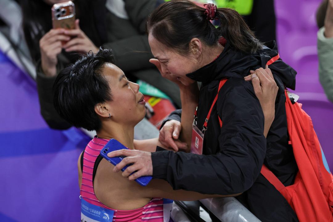 11月19日晚,十五运会女子100米栏决赛,广东队的刘景扬战胜夺冠热门吴艳妮、林雨薇获得金牌!赛后刘景扬第一时间跑向了在观众席的妈妈,母女俩相拥而泣。