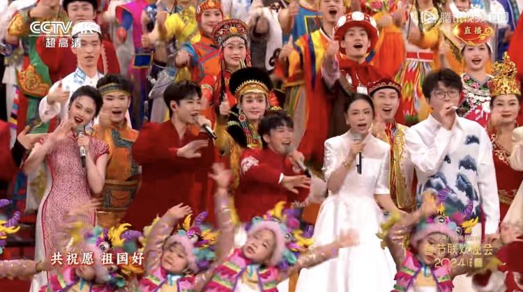 上游新闻记者发现,刚刚最后亮相的这首压轴大作,相比往年已经有了更新的气象。一方面,大家熟悉的女高音歌唱家李谷一继续缺席领唱;同时,更多演员歌手亮相这一环节。