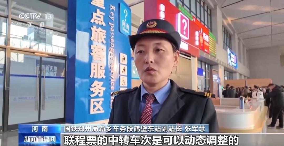 国铁郑州局新乡车务段鹤壁东站副站长 张军慧:联程票的中转车次是可以动态调整的,如果旅客发现区间内加开了更符合出行需求的临客列车,或者是没能赶上预定的中转车次,在开车前和开车后当日均可改签预售期内车票。