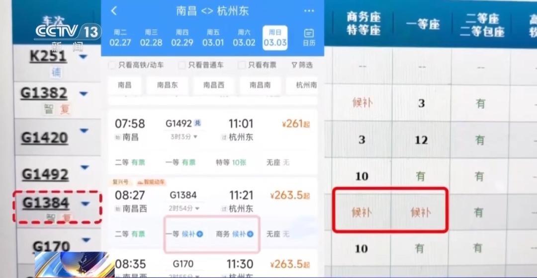 国铁南昌局漳州站客运员 王琪:铁路12306是按照先来后到的顺序兑现候补车票的。所以,旅客越早提交候补购票信息,买到候补车票的机会也就越大。