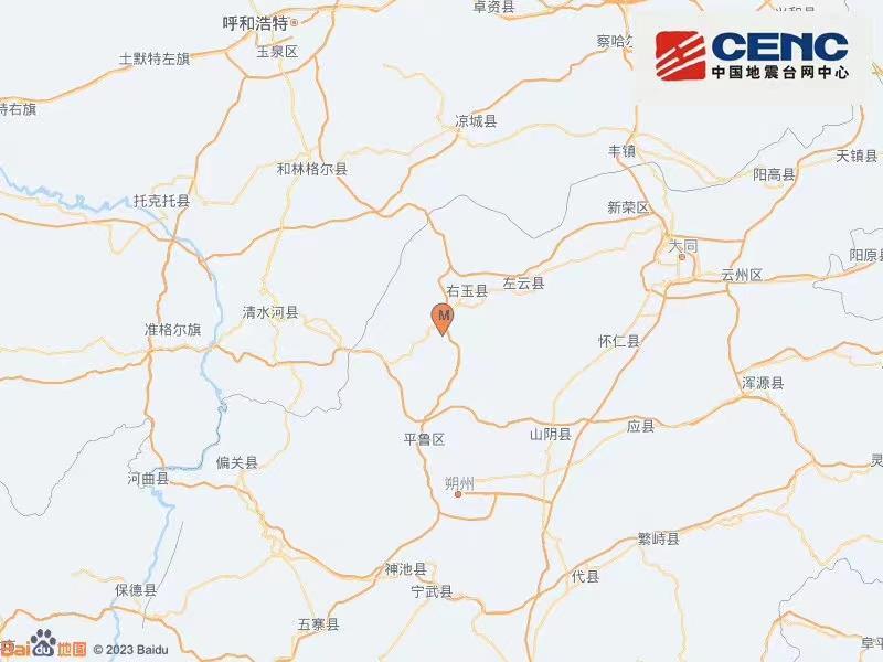 中国地震台网正式测定:02月20日17时52分在山西朔州市右玉县(北纬39.87度,东经112.37度)发生3.2级地震,震源深度15千米。