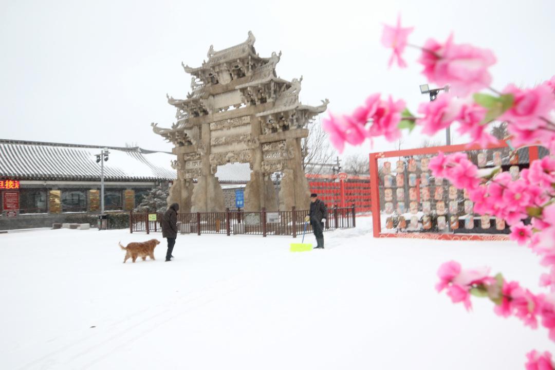 2月21日,山东省烟台市蓬莱区市民冒雪出行。近日,多地迎来降雪天气,大地银装素裹。新华社发(于良意摄)