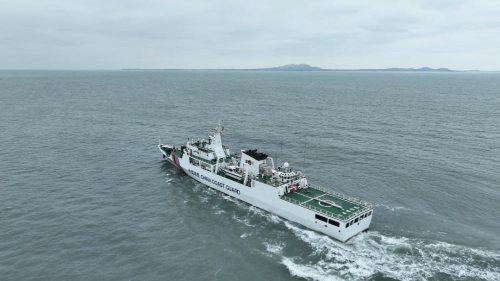 2月25日,福建海警组织舰艇编队在金门附近海域开展执法巡查。巡查期间,海警舰艇采取编队航行、识别查证、警戒护渔、喊话警告等措施,加强重点海域执法巡查,有效维护有关海域作业秩序,切实维护渔民生命财产安全。