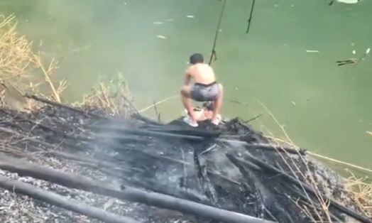 几名小学生在河边竹林烧烤时