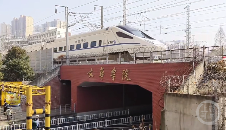 近日,一名微博网友在个人主页发视频称,在武汉有一所大学的校门上竟然在跑火车。视频显示,校门上面写着文华学院,门上不时有货运火车和动车从上面经过。“这样的校门真是太有趣了”,视频引发网友热议。