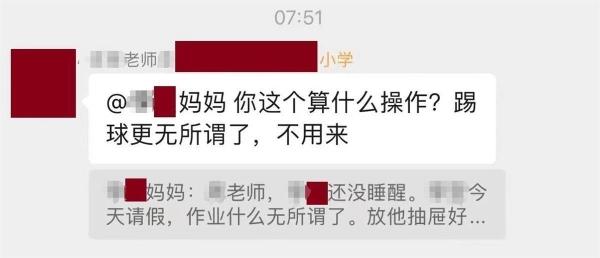 群聊截屏记录显示,在上海金山区某小学一个班级微信群内,一名家长向班里老师表示:“从今天开始,XX所有的第一节早课不上。让他睡到自然醒,他现在的睡眠比早课重要些。孩子小,不适合太早起来。作为大人,太早了我也受不了,不想起来。”随后,有老师在群内对家长的言论进行了回应,在后续交谈中,家长和老师发生了言语争执。
