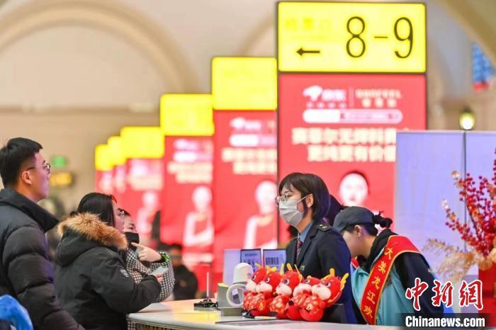 哈尔滨站工作人员正在解答旅客出行需求 原勇 摄