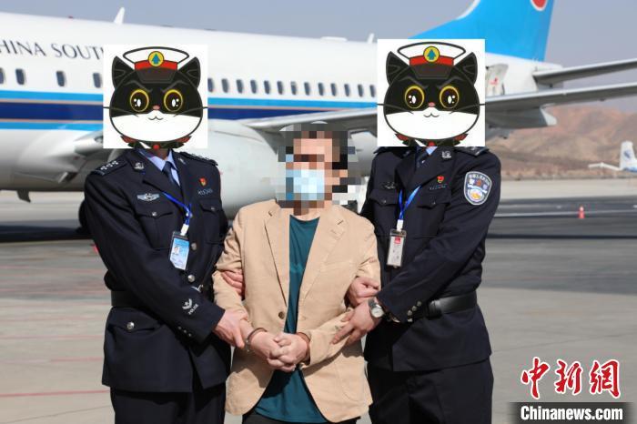 图为青海警方将犯罪嫌疑人陈某胜押解回国。青海省公安厅经侦总队供图