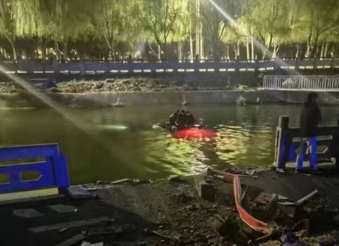 据李嘉笙回忆,3月17日凌晨5时许,东坡湖水闸外的道路上一辆宝马车突然失控,穿过了绿化带冲出栏杆落入河中央,车内5人落水。