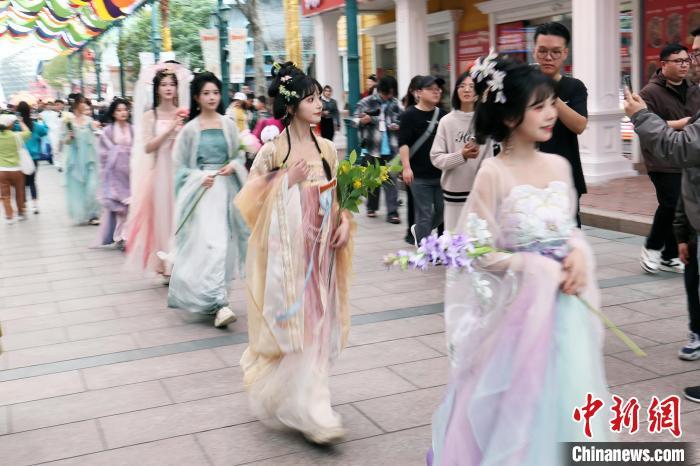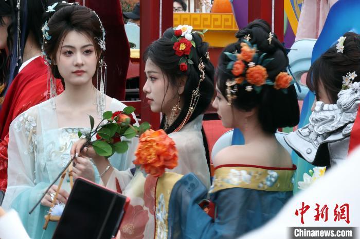 身着汉服的年轻女孩引人关注。中新网记者 汤彦俊 摄
