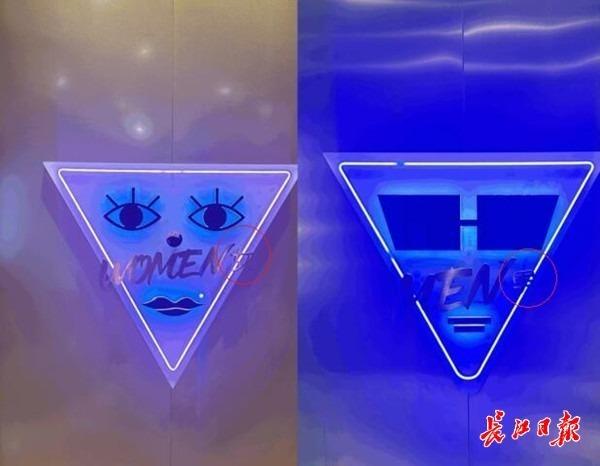 熊女士今年27岁,是土生土长的武汉人,经常逛街的她对武汉各大商场都很熟悉。尽管如此,她有一次去武汉一大型艺术购物中心时,还是被其卫生间的标识弄昏了头。“女性卫生间标识形似一张女人的脸,睫毛、眼睛、嘴巴具备,鼻子处是英文‘WOMEN(女)’,男性卫生间标识看起来像一张戴着墨镜的男人的脸,鼻子处是‘MEN(男)’。”