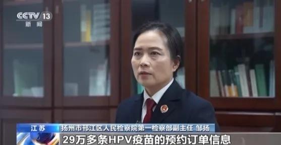 江苏省扬州市邗江区人民检察院第一检察部副主任 邹扬:几个月的时间,他们一共获取了全国范围内的29万多条HPV疫苗的预约订单信息、客服聊本以及一些短信群发平台的账户。