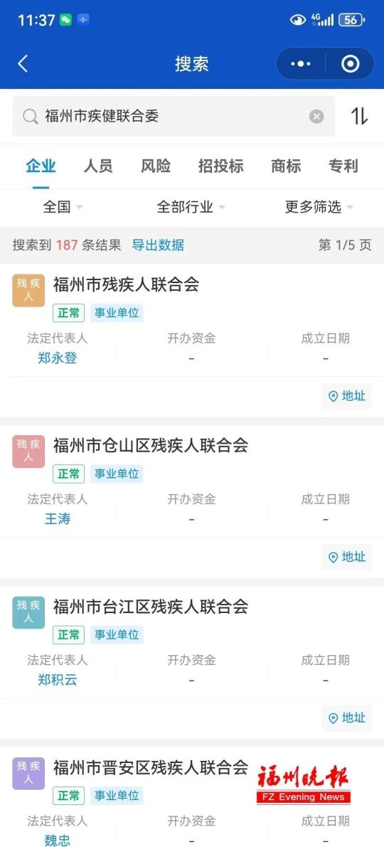 记者又登录企查查小程序也未查到“福建省福州市疾健联合委”的相关信息。
