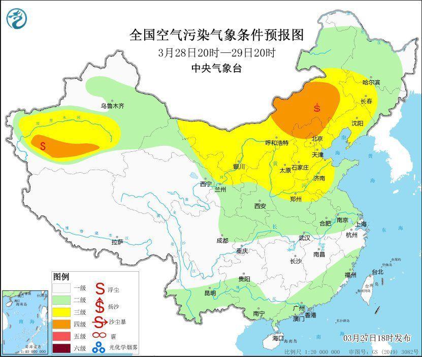 中新网3月27日电 受冷空气大风影响,预计3月27日20时至28日20时,新疆南疆盆地、内蒙古、宁夏、陕西中北部、山西、河北、北京、天津、山东、河南中北部、黑龙江西部、吉林中西部、辽宁等地的部分地区有扬沙或浮尘天气,其中,内蒙古中部、河北西北部、北京西北部等地的部分地区有沙尘暴,内蒙古中部局地有强沙尘暴。中央气象台3月27日18时继续发布沙尘暴黄色预警。