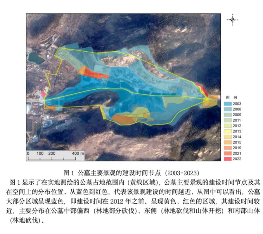 太平陵公墓是1996年经民政部门审批的经营性公墓,合法审批面积为87.53亩。遥感卫星影像分析显示,该公墓大面积非法扩建持续多年,存在毁林挖山建墓地的情况。