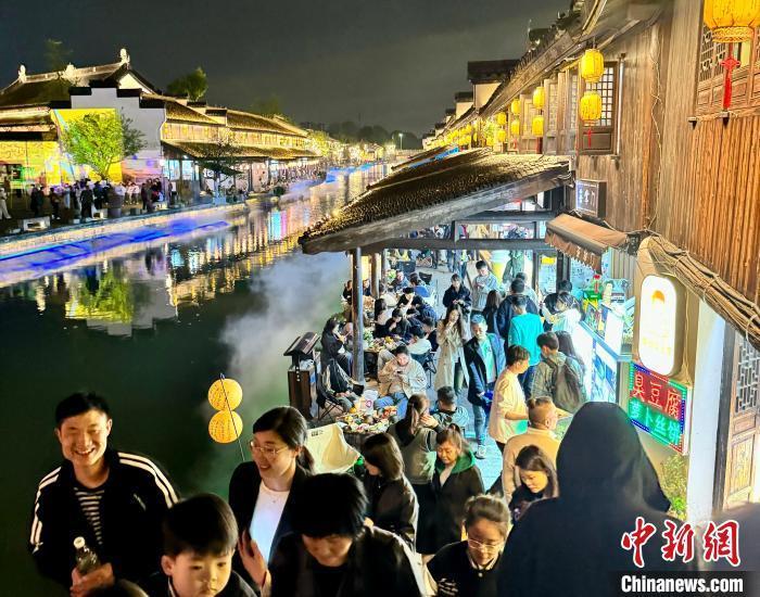水畔围炉“夜茶”、欣赏水上灯光秀、小酒馆听歌……今年清明假期,位于浙江绍兴的柯桥古镇吸引了一大批游客,人们在古色古香的画卷中欣赏璀璨夜景,享受假日里的别样松弛感。丰富的“夜游”活动刺激着各式消费,催热了“夜经济”。