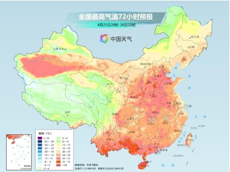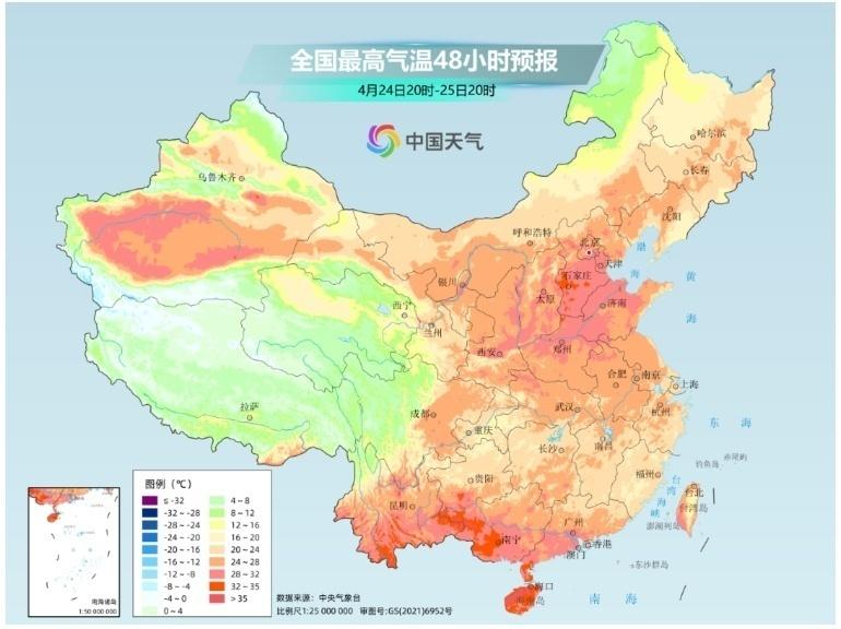 预计26日,北方气温将升至近期的高点,从东北南部往南的大部地区最高气温普遍会达到25℃以上,尤其是陕西、河北、河南等地部分地区最高气温将直奔30℃大关,甚至超过30℃,大幅高于常年。