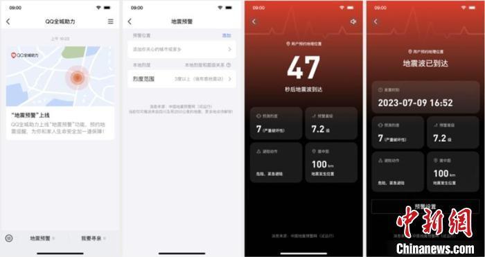 QQ平台地震预警功能。(拼图)四川省地震局供图