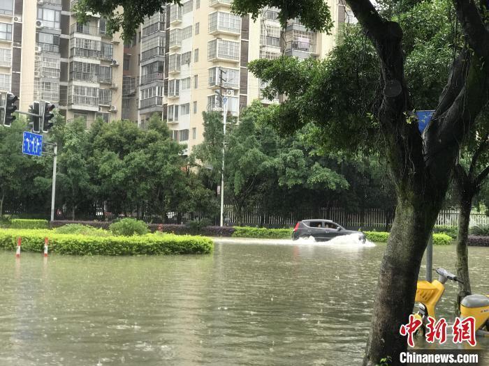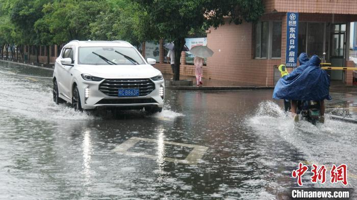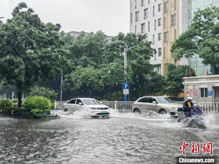 5月19日,桂林市七星区穿山东路路面积水,车辆涉水通行。涂丽莎 摄