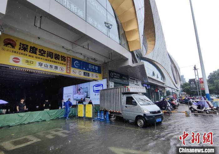 5月19日,桂林市七星区穿山东路一商场门前路面积水。涂丽莎 摄