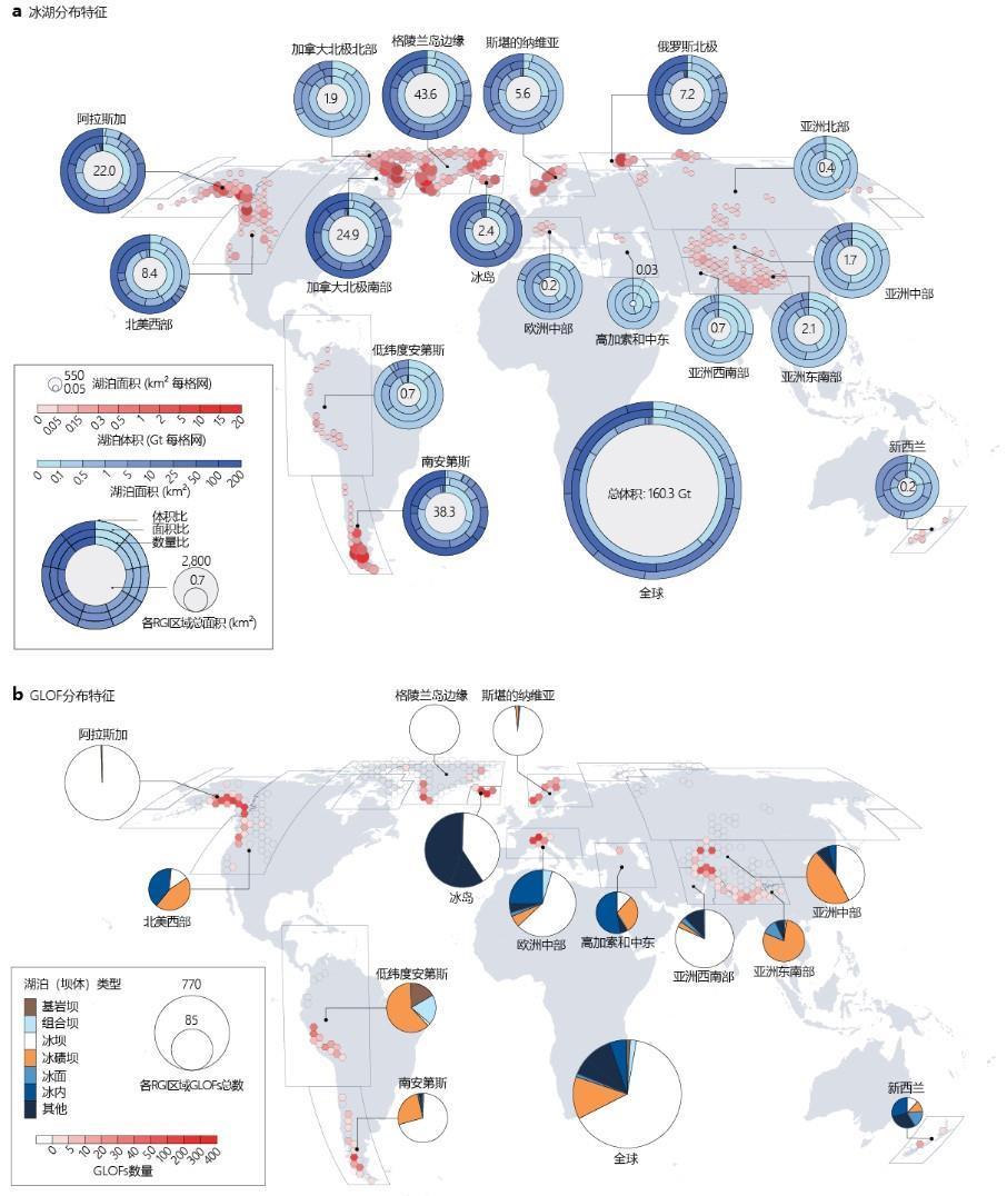该文章的共同第一作者和通讯作者张国庆研究员介绍,全球变暖背景下,冰川正在加速消融与退缩,当冰川融水受到冰川、冰碛或基岩阻塞时,冰湖在冰前、冰缘、冰面、冰内或冰下形成。冰湖可能引发冰湖溃决洪水。开展全球冰湖地理分布、形成时间、演变过程和物理特性的综合研究,对于减轻下游地区遭受冰湖溃决洪水破坏至关重要。