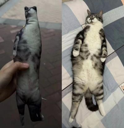 浙江金华的00后博主“石榴崽崽”经常刷到丑猫抱枕,于是,她也决定下单一个看看。“一开始我不太相信真有那么丑,没想到收到的实物就像一条风干鱼,我笑了半天,还把我家猫吓坏了。”