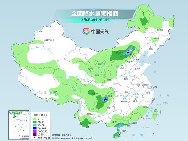 今明天(6月5日至6日)广东、广西降雨会有所减弱,但部分地区仍有中到大雨,局地暴雨或大暴雨。同时华北、东北一带多阵雨或雷阵雨,局地可能伴有强对流天气。在降雨和冷空气的影响下,北方气温会出现波动,江南大部、华南北部等地也因频繁的降雨气温较常年同期偏低。