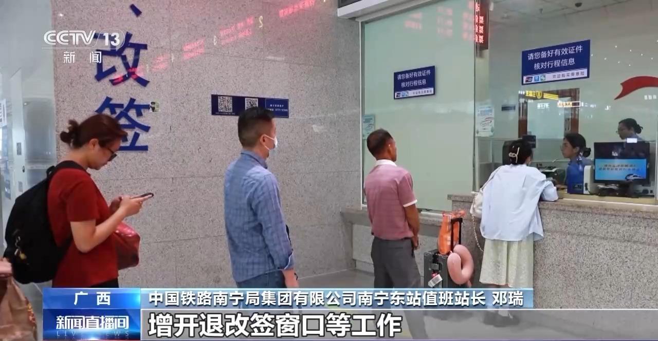 国铁南宁局南宁东站值班站长 邓瑞:如遇车运行晚点较多时,车站将提前做好信息发布,增开退票改签窗口等。