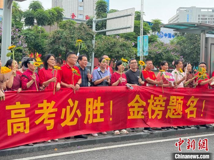 家长们送出高考祝福。林洁琪 摄