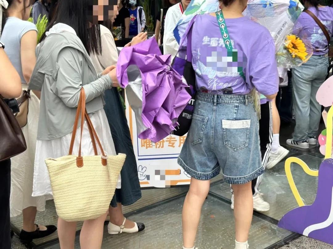 实际上,唯粉应援会的组织者对前来领取纪念品的粉丝的身份审核得十分严苛。团建场地内,她们吆喝着“提前把观赛群和比赛门票拿出来”。比赛门票相对容易买到,但想进观赛群却有不低的门槛。“申请时要审核你是不是唯粉,看你的微博超话等级够不够高。”一位唯粉应援会组织者说。