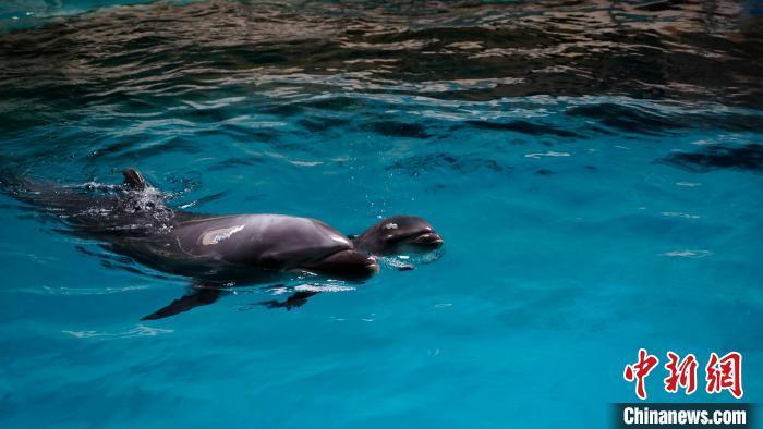 中新网哈尔滨7月2日电 2日,记者从哈尔滨波塞冬旅游度假区获悉,黑龙江省第一只人工饲育环境下自然分娩的海豚宝宝于近日顺利诞生。