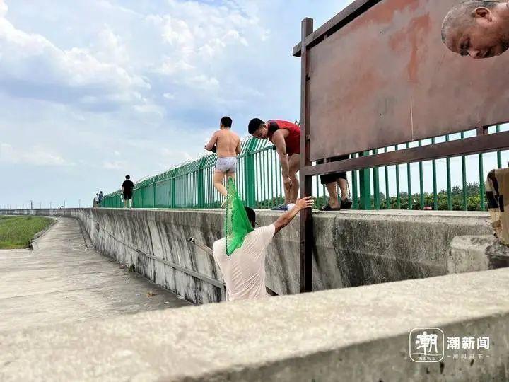周师傅印象中,今年春天以后,抢潮头鱼的人越来越多。“有老乡带老乡来抢鱼的,也有网上看了短视频以后找过来的。”周师傅说,夸张的是,还有人把三四岁的小孩也抱下了江堤。